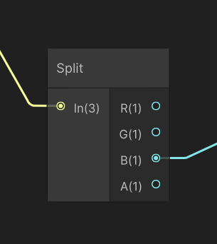 But, since we only want this effect to happen when the player is moving to the front or to the back, not when moving side to side, we need to extract only the Z value from this equation. We only care if the player is changing their value along the Z axis. To do this, we're going to extract the Z value from this Vector 3 value, using a split node. It's a little confusing because the values say RGBA, but you can also use this when it comes to vectors, and in the case of vectors these values are really XYZ and W.